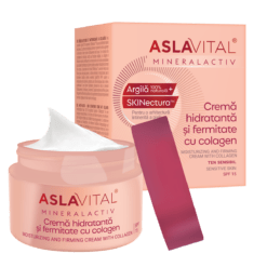 Natural oils (squalane, olive oil), Aquaxyl and SepiliftTM DPHP hydrating complex play an important role in increasing hydration and restoring the skin’s protective barrier. The intake of Collagen and Marine Elastin hydrates in depth and contributes to the restructuring of the extracellular matrix that supports the architecture of the dermis, mitigates wrinkles, supports the improvement of skin elasticity and firmness. The SKINectura™ extract, nicknamed “Flowers nectar for a young skin”, contains the glycoprotein Tenascin X with an anti-wrinkle and restructuring of the dermis architecture, increasing firmness and preventing skin sagging role. Natural clay from the Pădurea Craiului Mountains, together with solar filters, ferulic acid and vitamin E, prevent wrinkles, protect against oxidative stress generated by ultraviolet radiation and pollution. Apply in the morning, on the face, neck and bustline, after cleansing.